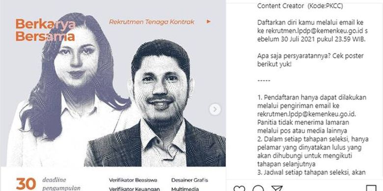 JAKARTA - Lembaga Pengelola Dana Pendidikan LPDP membuka lowongan kerja tenaga kontrak untuk 6 posisi. Lowongan Kerja LPDP Kemenkeu untuk Lulusan D3 Jangan Sampai Terlewat. Berikut ini sederet posisi dan kualifikasi lowongan kerja untuk D3 di LPDP Kemenkeu pada Agustus 2021.